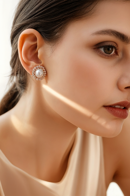 Lustrous Pearl & Diamond Halo Stud Earrings