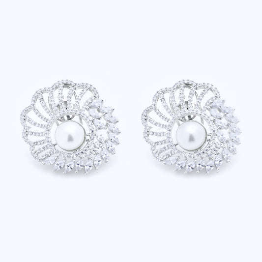 Lustrous Pearl & Diamond Floral Stud Earrings