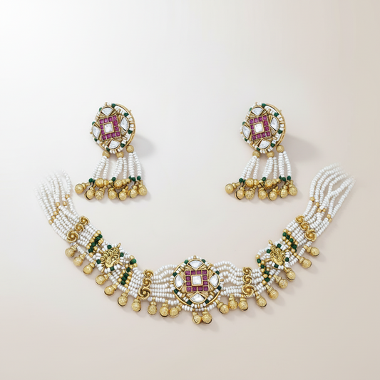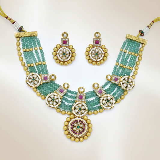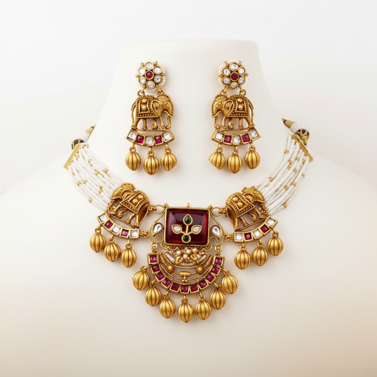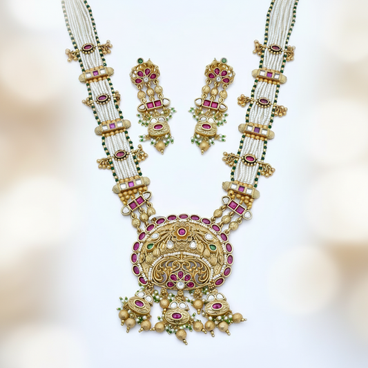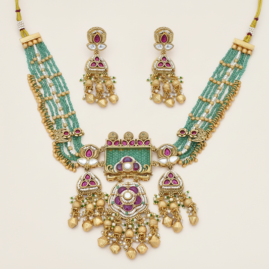 Each piece in the Noor collection is meticulously handcrafted, showcasing intricate detailing, traditional motifs, and rich finishes that echo historic artistry. From ornate necklaces and statement earrings to majestic bridal sets, Noor is designed for those who value tradition elevated with refined elegance.