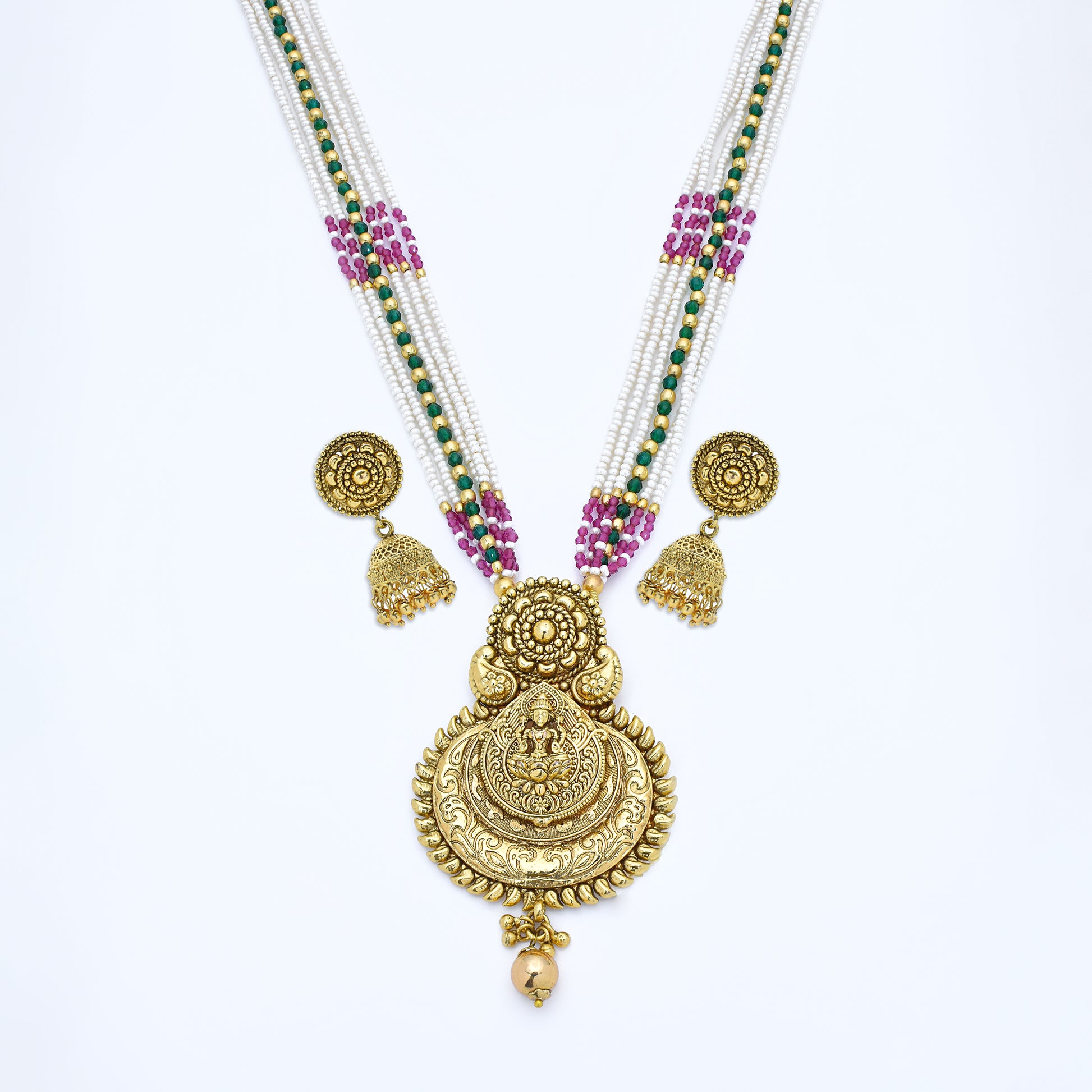 Experience otherworldly elegance with Ethereal Gold Necklace Set. Made from hypoallergenic copper, these antique-finish bangles are designed to captivate and inspire.